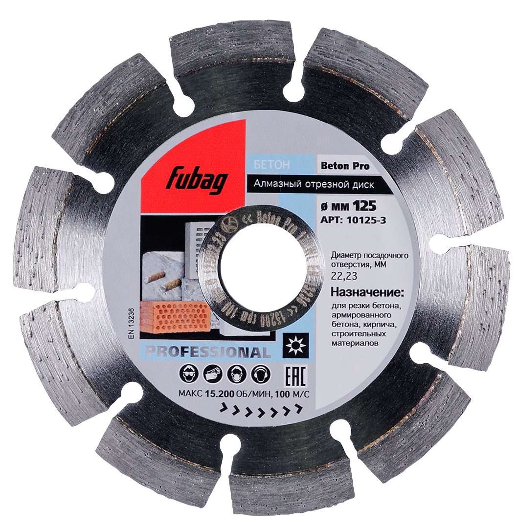 Алмазные отрезные диски по бетону используются для работы со станками, бензорезом, а также для влажной и сухой резки. Особенность таких приспособлений – непрерывная режущая кромка. При выборе подходящей модели нужно учитывать несколько нюансов, например, диаметр и размер посадочного отверстия, а также массу. В целом алмазные диски по бетону – это относительно недорогие, универсальные инструменты, которые могут работать с особо твердыми материалами. Каждое изделие от FUBAG отличается высокой точностью, долговечностью, износостойкостью и отличной производительностью.