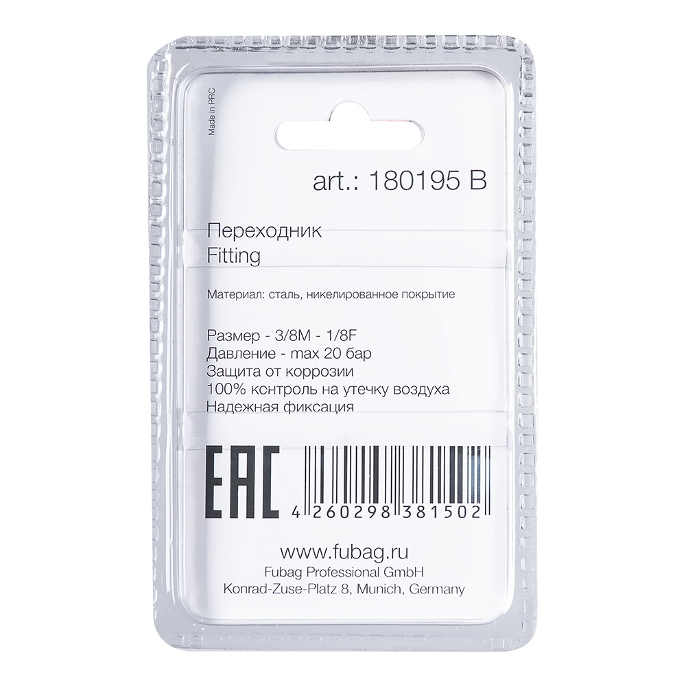 Характеристики FUBAG Переходник 3/8 дюйма M на 1/8 дюйма F, блистер 1 шт.