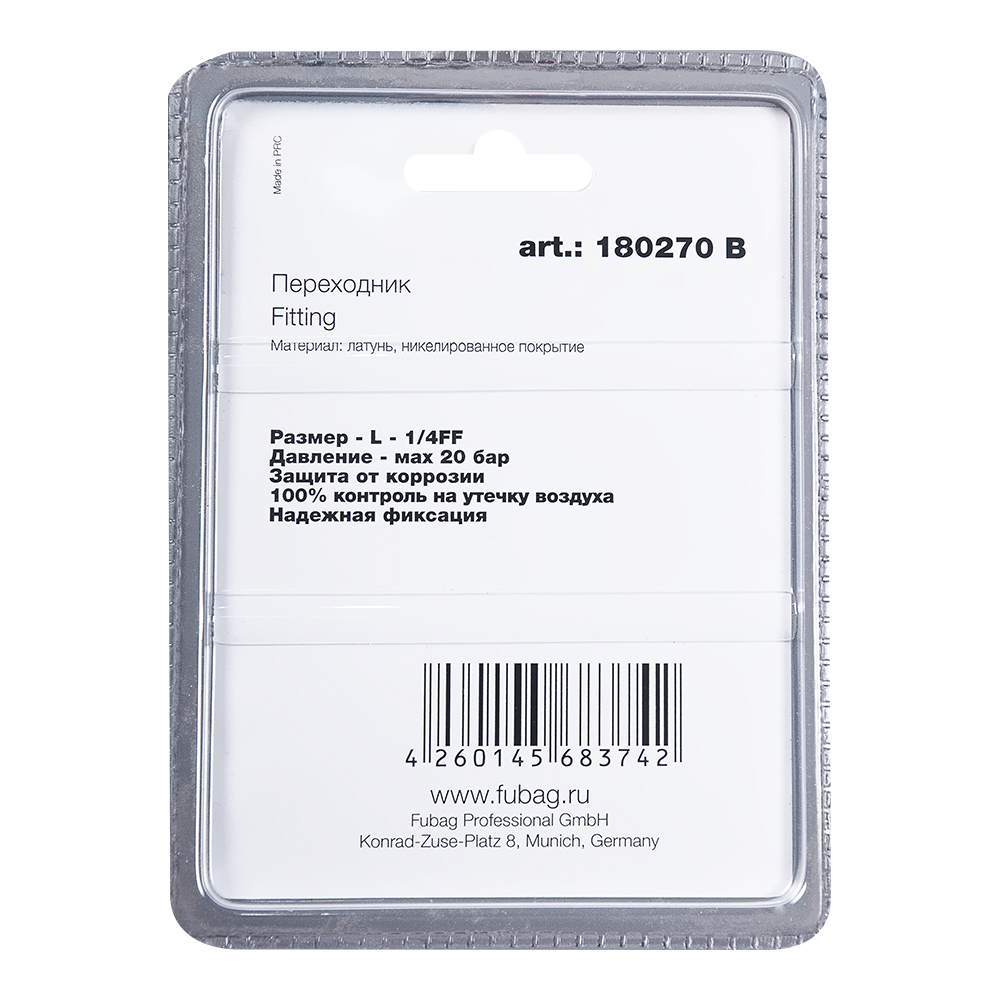 Характеристики FUBAG Переходник L - 1/4 дюйма FF, блистер 1 шт