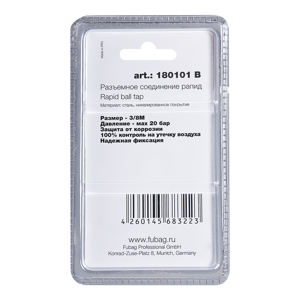 Характеристики FUBAG Разъемное соединение рапид (муфта), 3/8 дюйма M, наружн. резьба, блистер 1 шт