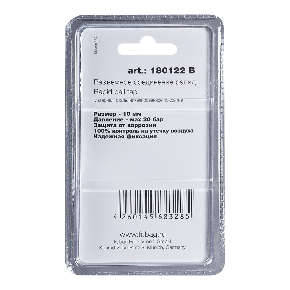 Характеристики FUBAG Разъемное соединение рапид (муфта), елочка 10мм с обжимным кольцом 15х18мм, блистер 1 шт