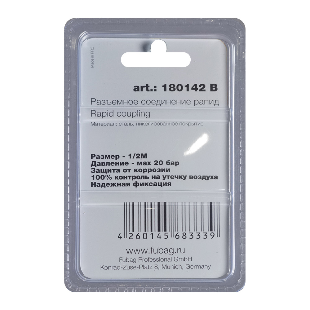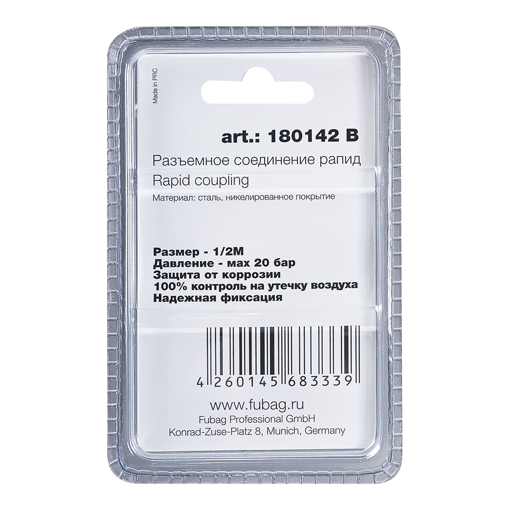 Характеристики FUBAG Разъемное соединение рапид (штуцер), 1/2 дюйма M, наруж.резьба, блистер 1 шт