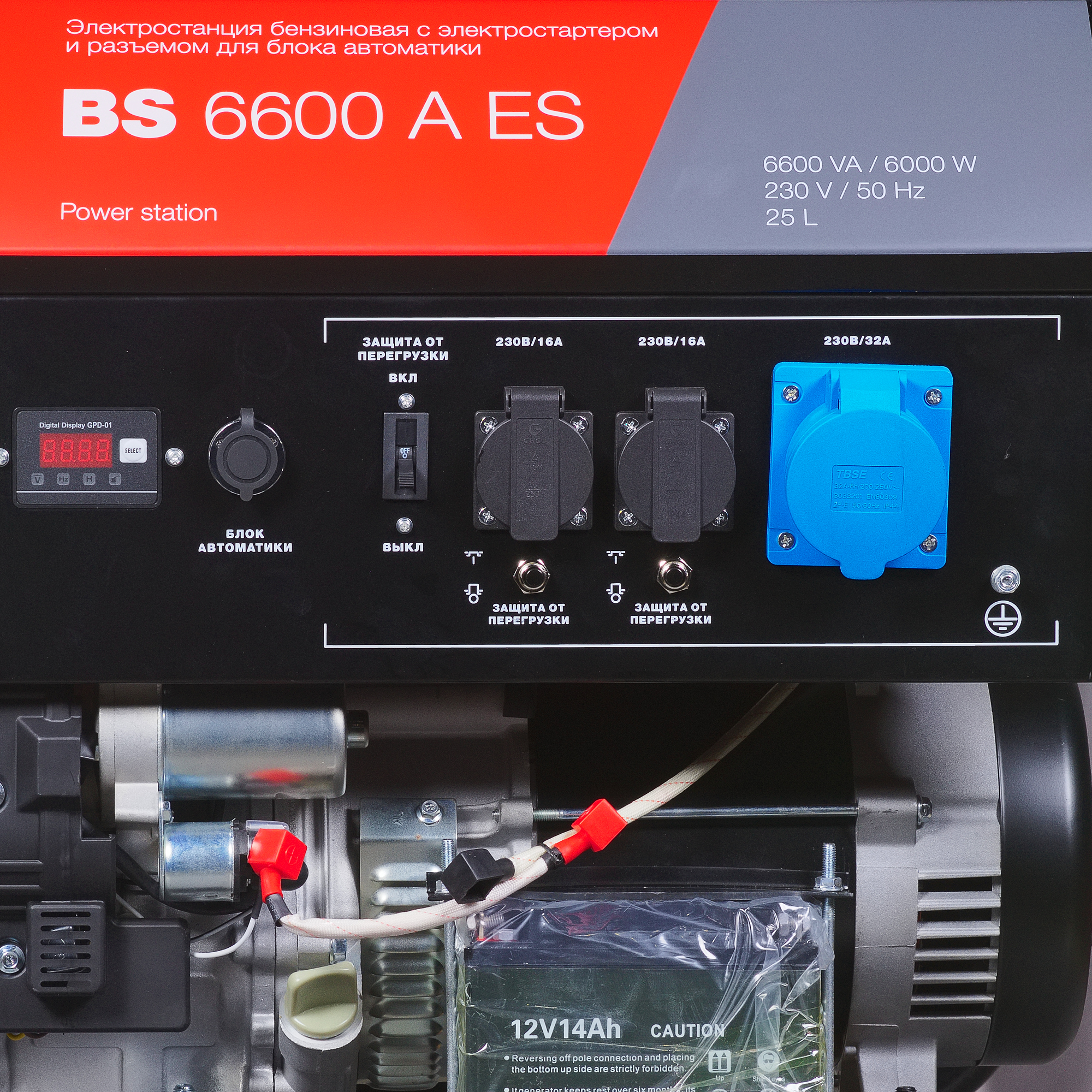 Легкий запуск генератора обеспечивает электростартер, а аккумулятор входит в комплект поставки. Предусмотрена возможность подключения блока автоматики для организации электроснабжения в автоматическом режиме (опция). Управление заслонкой карбюратора и топливного крана происходит в автоматическом режиме, в случае необходимости предусмотрено ручное управление. Панель управления оснащена тремя пыле/влагозащищенными розетками: 2х230В/16А и 1х230В/32А для подключения мощных потребителей. На розетки установлена индивидуальная защита от короткого замыкания и перегрузки. Мультифункциональный цифровой дисплей, установленный на бензогенераторе Fubag BS 6600 A ES, позволит контролировать выходное напряжение и частоту, отслеживать межсервисные интервалы. Индикатор низкого уровня масла предупредит о его недостаточном объеме, а датчик уровня масла отключит станцию.