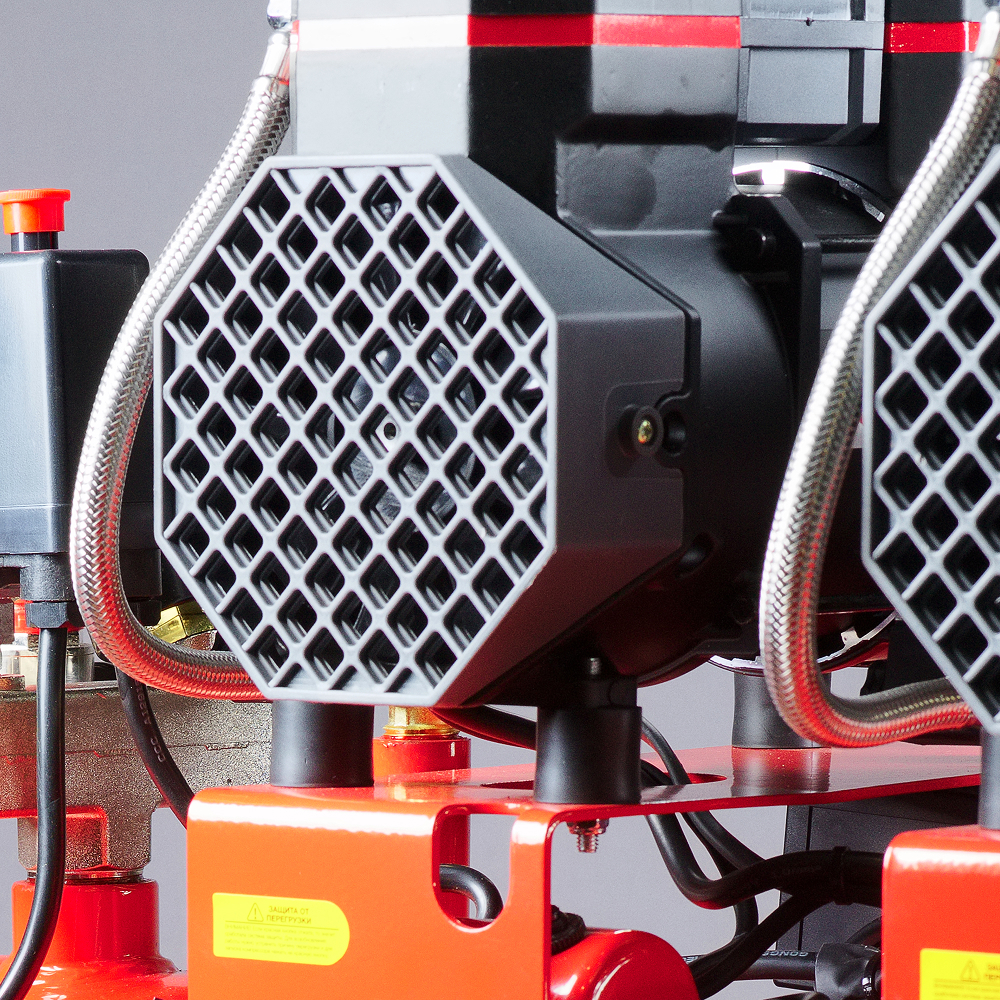 - 2 мощных вентилятора создают усиленный воздушный поток для снижения температуры головки и двигателя.