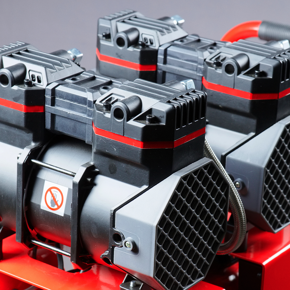 Отсутствие масла позволяет легко транспортировать компрессор в любом положении без риска протечек.