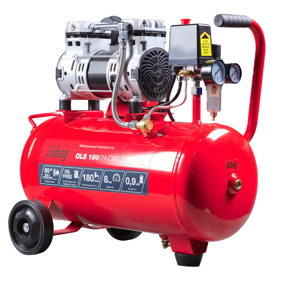 Безмасляный коаксиальный компрессор Fubag OLS 180/24 CM1.2 производительностью 180 л/мин - лучший выбор, если нужен чистый, без примесей масла, воздух при работе с краскопультами, аэрографами и другими окрасочными инструментами для проведения ответственных покрасочных работ.