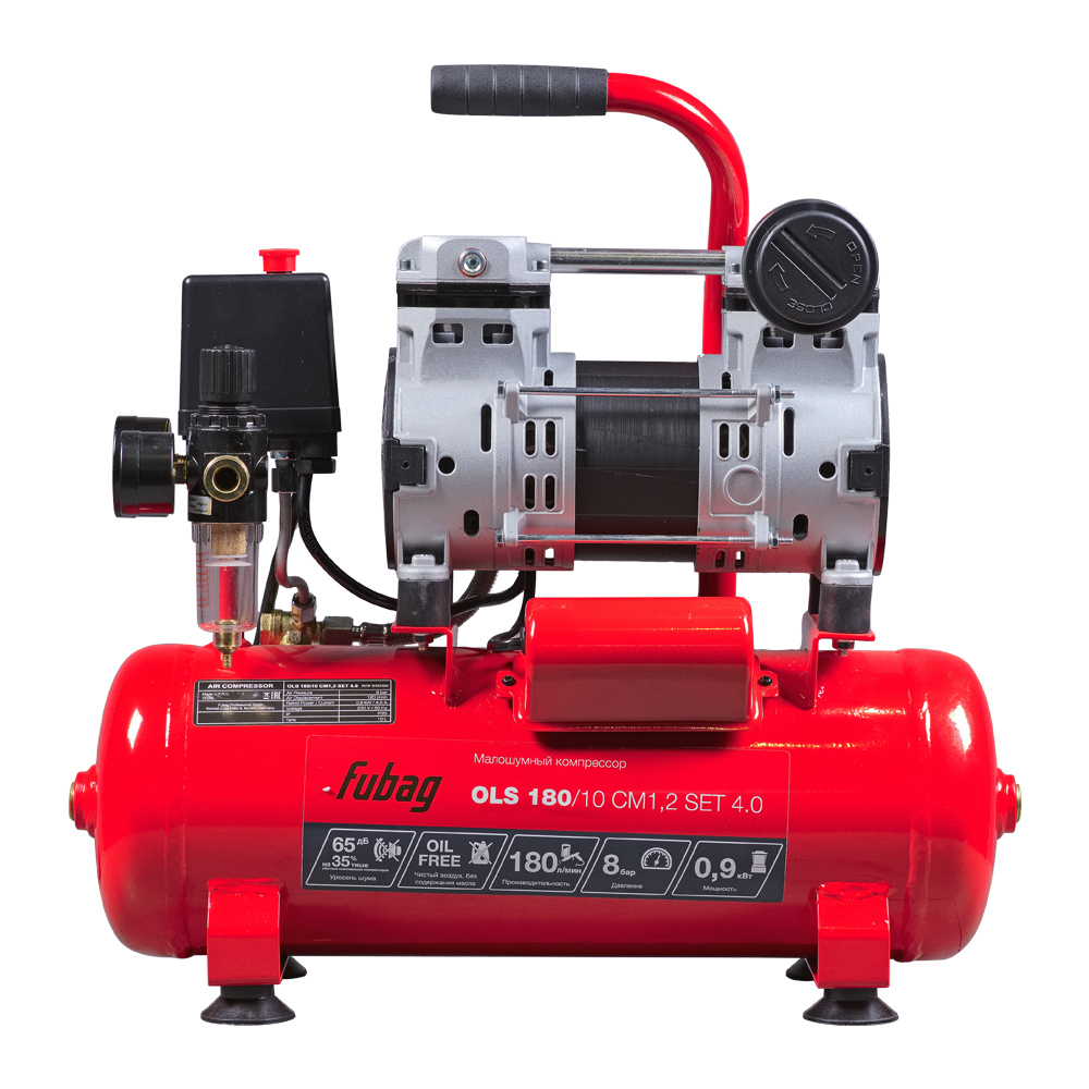 Безмасляный коаксиальный компрессор Fubag OLS 180/10 CM1.2 производительностью 180 л/мин - лучший выбор, если нужен чистый, без примесей масла, воздух при работе с краскопультами, аэрографами и другими окрасочными инструментами для проведения ответственных покрасочных работ.Компрессоры серии OLS - безмасляные малошумные машины, предназначенные для снабжения пневмоинструмента чистым, без примесей масла, воздухом. Идеальны для использования при проведении окрасочных работ, в автосервисах, небольших мастерских.
